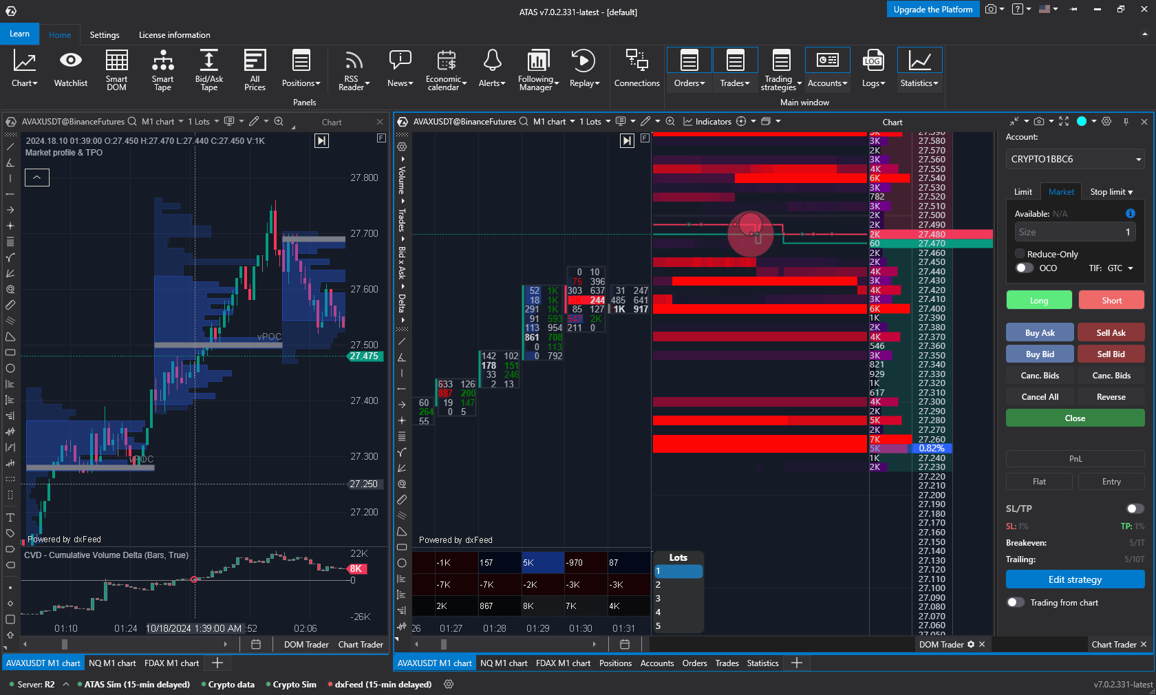 ATAS 平台专注于订单流分析、集群分析、市场成交量 profile 和先进的技术分析。凭借强大的分析工具，该平台可增强市场透明度，帮助交易者更快做出反应并作出知情的交易决策。