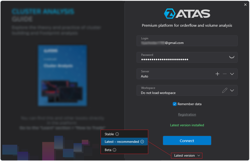 安装完成后,请启动 ATAS 平台,然后输入您在注册后通过电子邮件收到的用户名和密码。