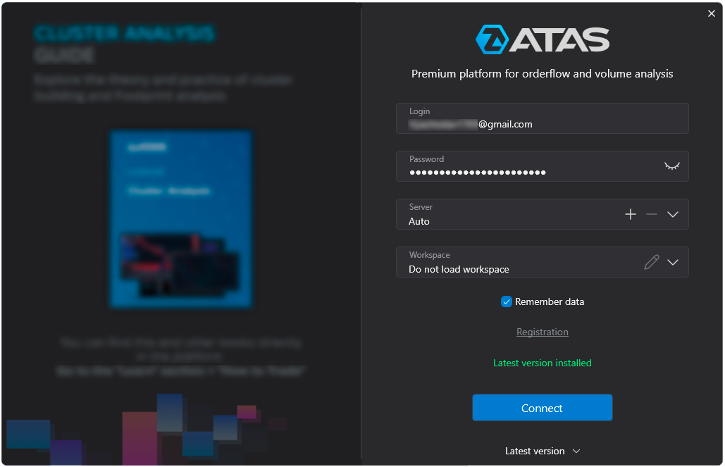 Nach der Installation öffnen Sie ATAS und geben Sie den Benutzernamen und das Passwort ein, die Sie nach der Registrierung per E-Mail erhalten haben. Damit Sie Ihre Daten nicht jedes Mal neu eingeben müssen, können Sie das Kontrollkästchen „Daten speichern“ aktivieren.