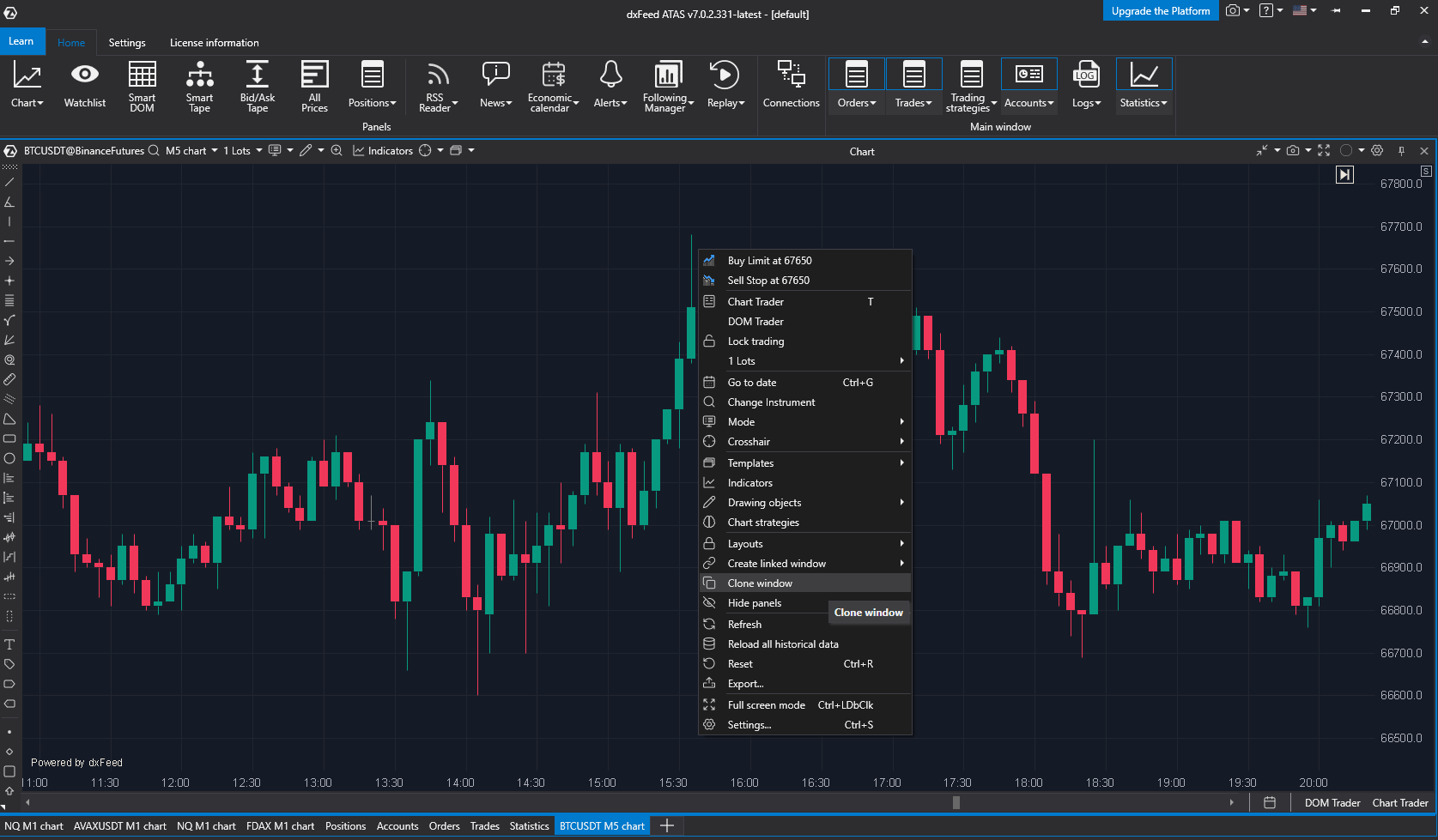Klicken Sie mit der rechten Maustaste auf den geöffneten Chart und wählen Sie „Fenster klonen“ aus dem angezeigten Menü.