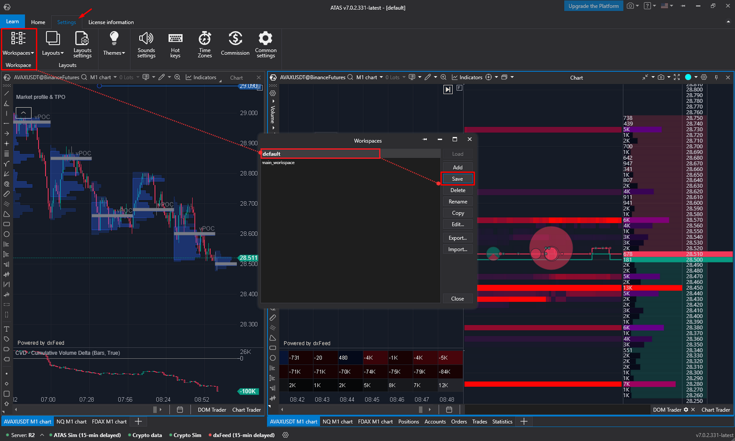 Da ATAS in erster Linie für die Analyse von Auftragsflüssen konzipiert ist, werden wir unseren Arbeitsbereich durch das Hinzufügen von Clustern erweitern und lernen, wie man mehrere Charts kombiniert.