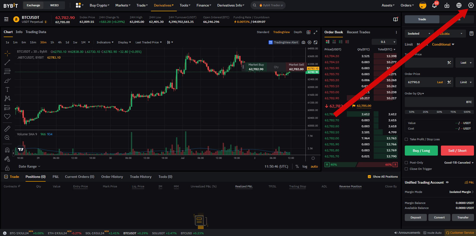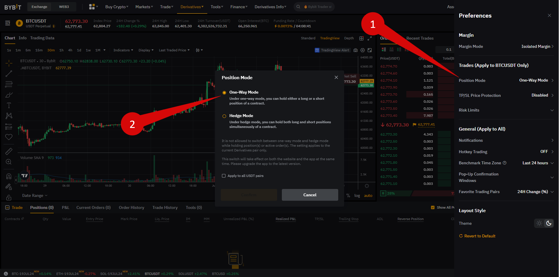 Damit das Trading funktioniert, muss in den Positionseinstellungen im Benutzerbereich der One-Way-Modus ausgewählt sein und nicht Hedge.