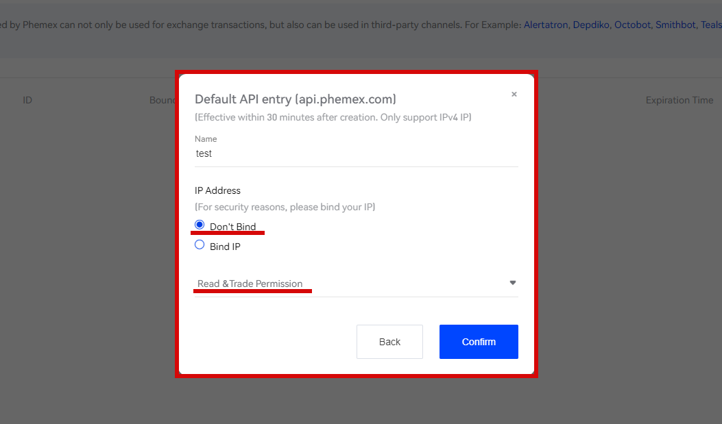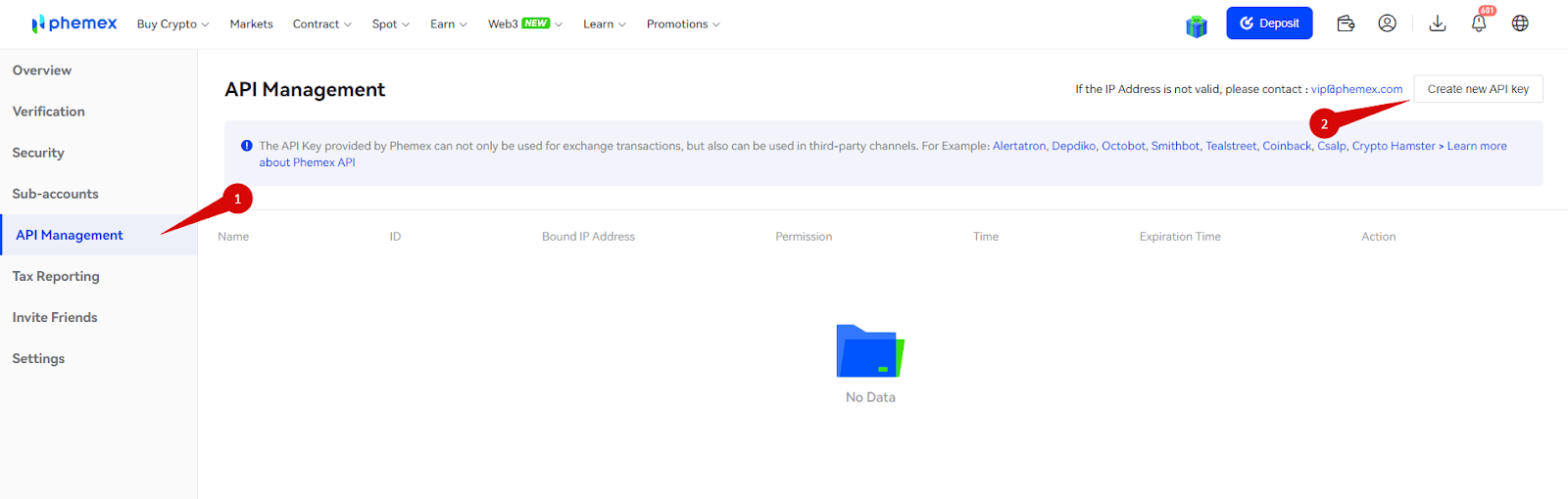Um Ihr Phemex-Konto mit der ATAS-Plattform zu verknüpfen, müssen Sie einen API-Schlüssel erstellen.
