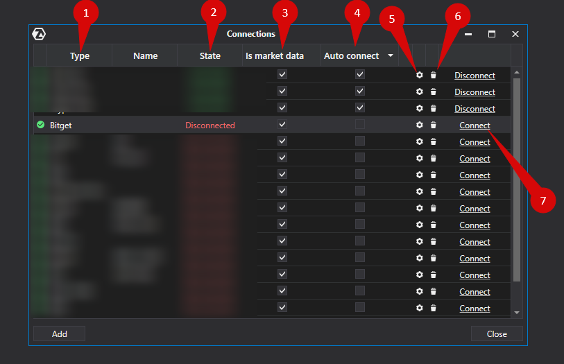 6\. Botón para eliminar la conexión.