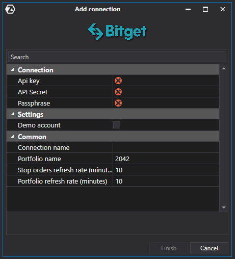 1\) En la ventana de conexiones, introduzca las claves que ha generado en su cuenta personal en el sitio web de Bitget.
