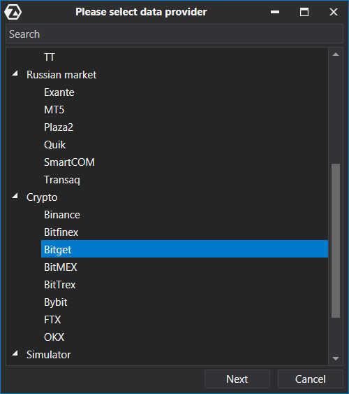 A continuación, se abrirá una ventana con una lista de cuentas y proveedores de cotizaciones disponibles: