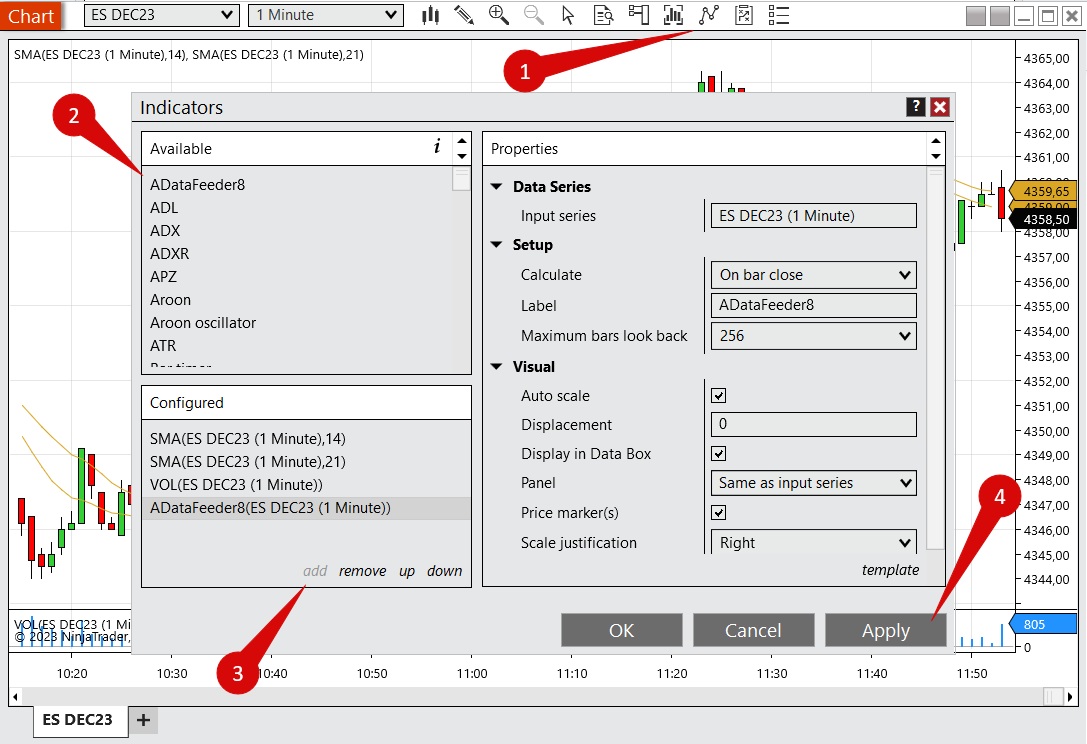 Añadir el indicador ADataFeeder8 al gráfico