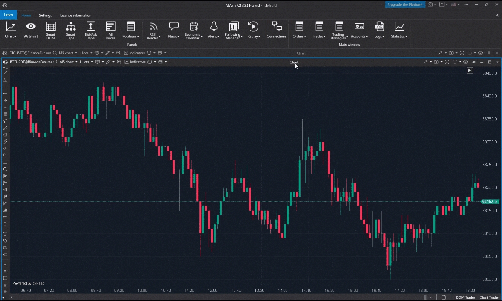 Poiché ATAS è prima di tutto una piattaforma per l’analisi del flusso degli ordini, aggiungeremo al nostro spazio di lavoro i cluster e vedremo come combinare più grafici.